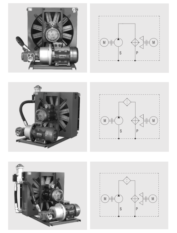 應用適用于:液壓系統(tǒng)獨立冷卻回路、潤滑系統(tǒng)及齒輪減速箱的冷卻。 典型應用:各種液壓動力站、潤滑系統(tǒng)、齒輪變速箱的冷卻。 產品特性 35bar靜態(tài)額定壓力,冷卻器部分采用標準電機和高強度風葉,加以緊湊高效的散熱片,以獲取佳冷卻效果。 油泵電機和風扇電機分別控制,油溫較低時可關閉風扇電機,以達到節(jié)能,低維護成本的效果。 油泵與散熱器連接后可形成安全、獨立的循環(huán)冷卻回路,避免了系統(tǒng)回油的沖擊,也可加設高性能的過濾器。 采用自吸能力強、低噪音的齒輪泵,泵進油口的高壓力可達-0.4bar。 泵的排量:32ml/rev、40ml/rev、63ml/rev、80ml/rev。其他排量請與錦潤聯(lián)系 8種配管方式可選,能滿足任何需求,請參考配管示意圖。 進、出油口標準為:G螺紋或SAE標準法蘭,其他牙口也可定制。 工作電壓: AC380V、AC440V、AC690V。 特殊電壓請與錦潤聯(lián)系。